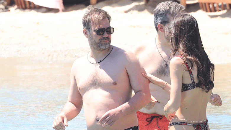 Γιώργος Σαμπάνης – Ιωάννα Σαρρή: Τρυφερές στιγμές σε παραλία της Μυκόνου – Φωτογραφίες