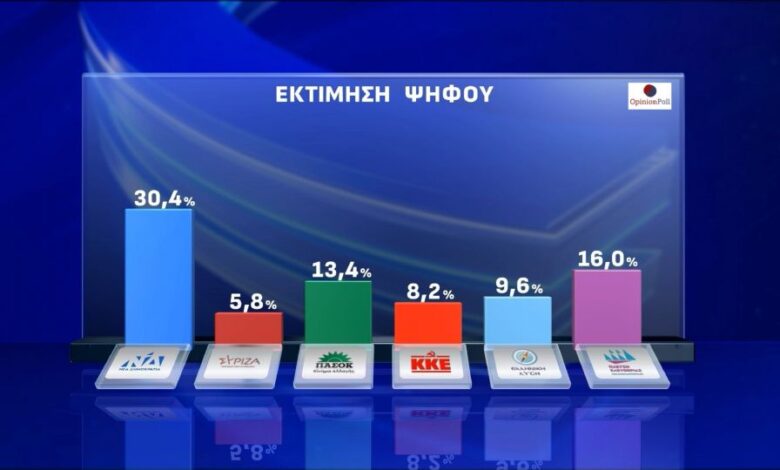 Δημοσκόπηση Opinion Poll: Επτακομματική Βουλή, στο 30,4% η ΝΔ, παραμένει δεύτερη η Πλεύση