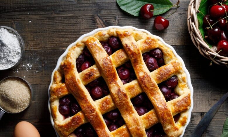 - Καθαρίζεις τα κεράσια σου, αφαιρώντας τα κοτσάνια. Απλώνεις από πάνω την υπόλοιπη ζύμη.