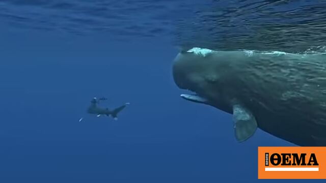 Μια από τις φάλαινες, μάλιστα, δάγκωσε την ουρά του καρχαρία για να κάνει σαφείς τις προθέσεις της, υποχρεώνοντας τον μεγάλο θηρευτή να επιστρέψει στον ωκεανό.