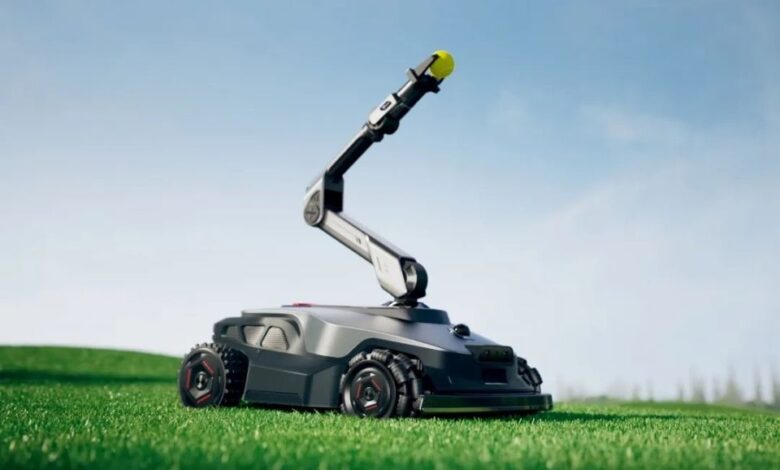 Μηχανή γκαζόν που μαζεύει φρούτα και πετάει μπάλες στον σκύλο