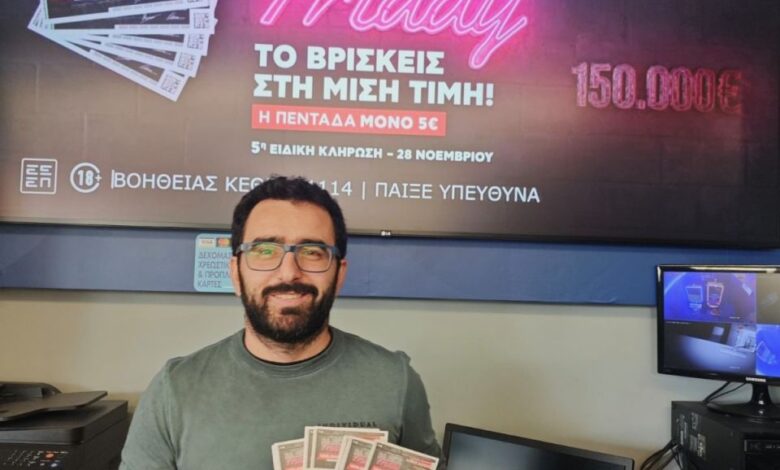 «Το Λαϊκό Λαχείο συμμετέχει για 3η συνεχόμενη χρονιά στην Black Friday, με τους παίκτες να προμηθεύονται τους λαχνούς τους στη μισή τιμή, δηλαδή με 5 ευρώ ανά πεντάδα και 1 ευρώ για κάθε λαχνό», αναφέρει ο Ιορδάνης Σιδηρόπουλος, ιδιοκτήτης καταστήματος ΟΠΑΠ στις Αχαρνές.