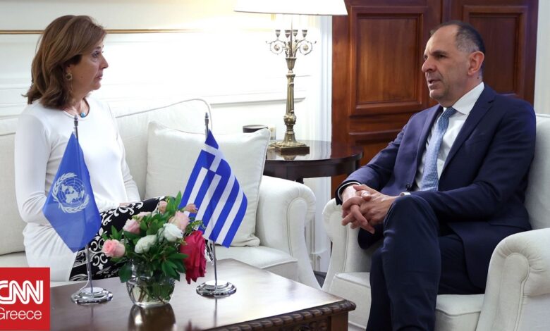 Ο κ. Γεραπετρίτης εξέφρασε την υποστήριξη της Ελλάδας στις προσπάθειες του Γενικού Γραμματέα του ΟΗΕ και της Προσωπικής Απεσταλμένης του, για το Κυπριακό, καθώς και τη βούληση της χώρας να συμβάλλει εποικοδομητικά, σε σύμπνοια με την Κυπριακή Δημοκρατία προς την εξεύρεση μιας συνολικής, δίκαιης και βιώσιμης λύση του Κυπριακού, στο πλαίσιο των σχετικών Ψηφισμάτων του Συμβουλίου Ασφαλείας του Οργανισμού Ηνωμένων Εθνών.
