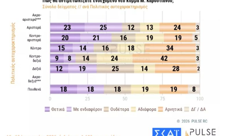Δημοσκόπηση Pulse: Στις 16,5 μονάδες η ψαλίδα ΝΔ έναντι ΠΑΣΟΚ – Πόσοι θα ψήφιζαν Καρυστιανού