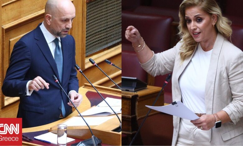 Την ώρα που η ανεξάρτητη βουλευτης, μιλούσε από το βήμα της Ολομέλειας, εγινε φασαρία στα έδρανα και όπως φαίνεται ενοχλήθηκε ιδιαίτερα όταν είδε τον Κώστα Μπάρκα να γελάει.