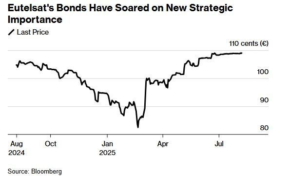 Σε αυτό το κλίμα, τα ομόλογα της Eutelsat Communications SA έχουν εκτοξευθεί τους τελευταίους μήνες λόγω της νέας στρατηγικής σημασίας της εταιρείας δορυφορικών επικοινωνιών, απομακρύνοντάς την από τις τάξεις εκείνων που θεωρούνται ότι βυθίζονται σε οικονομική δυσχέρεια.