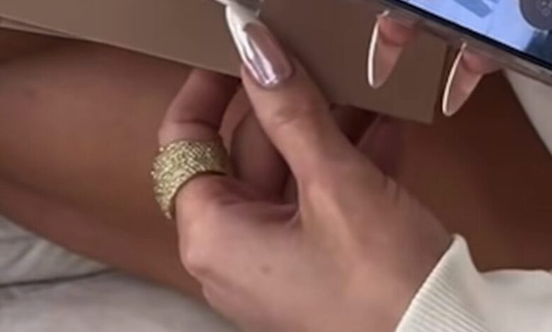 Σε πρώτο πλάνο είναι τα stiletto nails της με τη glam πινελιά. Πρόκειται για ένα french mani με glazed βάση που συνεχίζει να είναι μεγάλη τάση. Minimal μεν αλλά εντυπωσιακό είναι ιδανικό αν έχεις μακριά νύχια και αγαπάς το glam twist στο μανικιούρ σου.