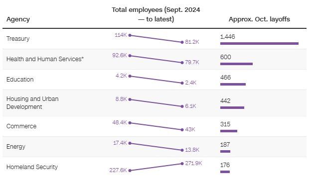 Η κυβέρνηση Τραμπ απέλυσε περισσότερους από 3.500 ομοσπονδιακούς υπαλλήλους σε επτά υπουργεία στις αρχές Οκτωβρίου, καθώς το κλείσιμο της κυβέρνησης συνεχίζεται.