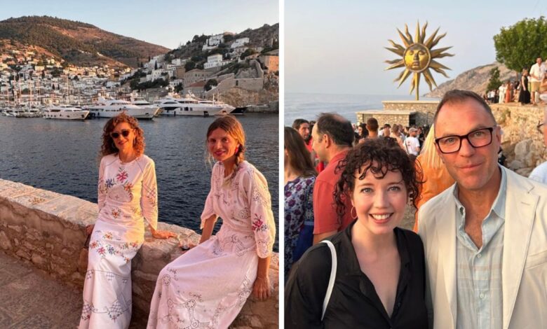 Άλκιστης Πουλοπούλου, Σήλια Δραγούνη, Μπιάνκα Κέννεντι, Ματίας Αρντ στα εγκαίνια της έκθεσης του ΔΕΣΤΕ στην Ύδρα