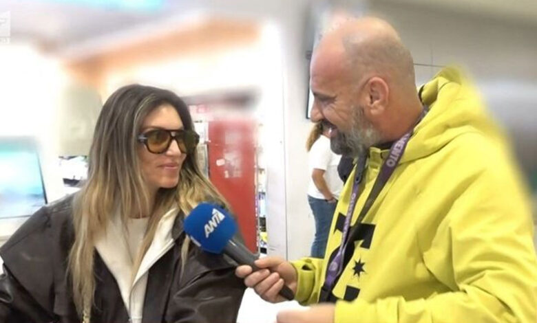 Στο αεροδρόμιο «Ελευθέριος Βενιζέλος» συνάντησε τις τηλεοπτικές κάμερες η Αθηνά Οικονομάκου, λίγο μετά την επιστροφή της από την Αργεντινή, όπου ταξίδεψε μαζί με τον σύντροφό της, Μπρούνο Τσερέλα.