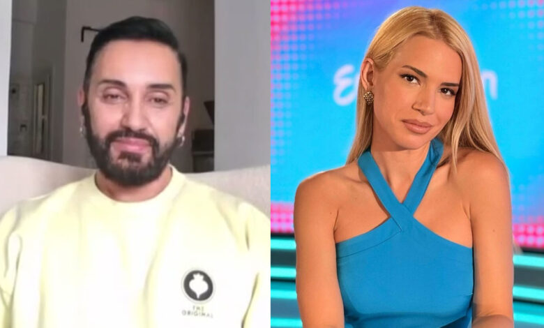 «Η συγκεκριμένη κυρία, η οποία πριν από λίγο την είδαμε στο βίντεο, είπε ότι έγραψε μόνη της, η ίδια τα κείμενα τα δικά της. “γράφω τα δικά μου κείμενα”. Ξέρω και εγώ από Eurovision, δεν μπήκα κεντρικός παρουσιαστής.
