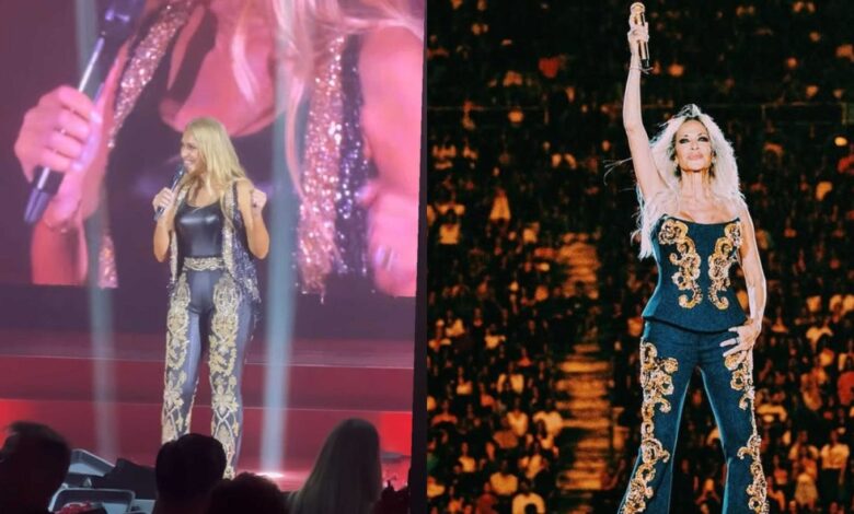 Το στυλ της Νατάσας Θεοδωρίδου θύμισε έντονα το χρυσό κοστούμι του οίκου Dolce&Gabbana που είχε επιλέξει η Άννα Βίσση για τη δική της θριαμβευτική εμφάνιση στο Παναθηναϊκό Στάδιο.