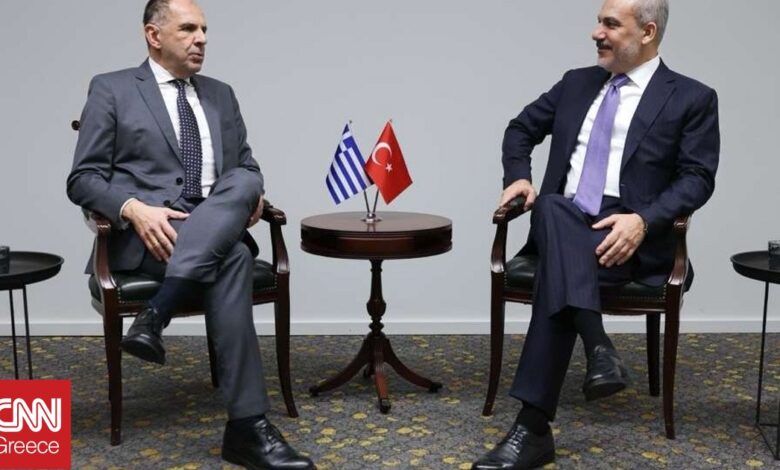 Τις κόκκινες γραμμές της Ελλάδας στις διμερείς συνομιλίες με την Άγκυρα επανέλαβε ο υπουργός Εξωτερικών Γιώργος Γεραπετρίτης στη συνάντησή του με τον Τούρκο ομόλογό του Χακάν Φιντάν, σύμφωνα με διπλωματικές πηγές, τονίζοντας πως «η οριοθέτηση ΑΟΖ και υφαλοκρηπίδας ειναι η μία και μόνη διαφορά μεταξύ Ελλάδας και Τουρκίας, ενώ θέματα κυριαρχίας είναι εκτός συζήτησης».