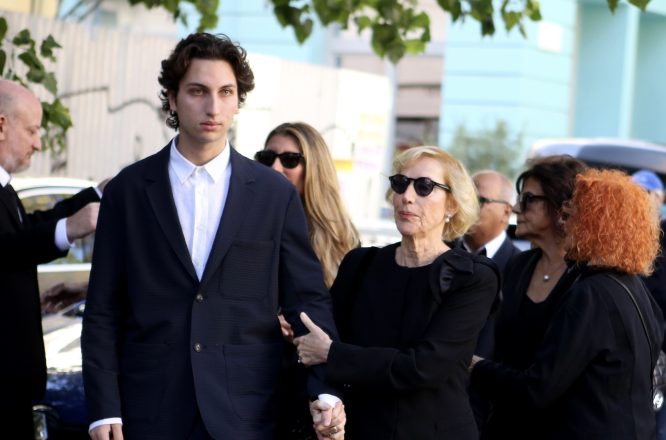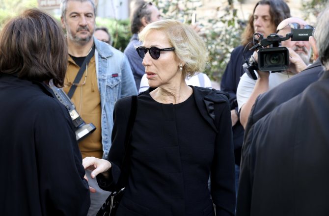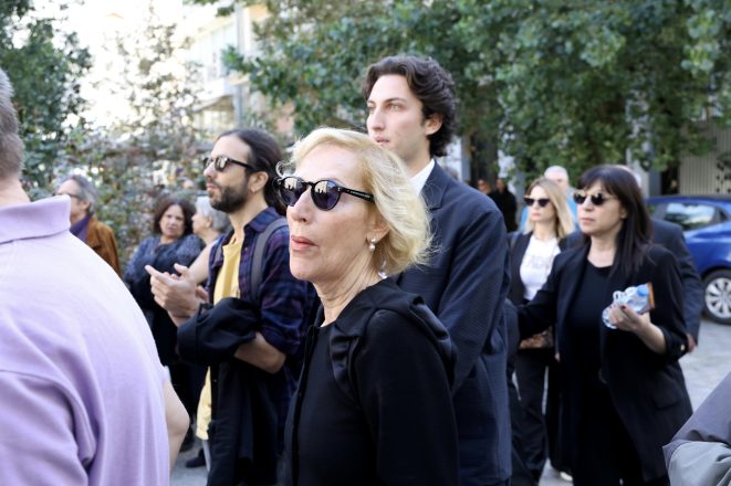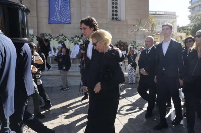 Κηδεία Διονύση Σαββόπουλου: Καταρρακωμένη η σύζυγός του, Άσπα Αραπίδου στη Μητρόπολη