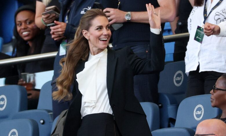 Η 43χρονη πριγκίπισσα της Ουαλίας φωτογραφήθηκε να παρακολουθεί με χαρά το Παγκόσμιο Κύπελλο Ράγκμπι Γυναικών το Σάββατο μελαχρινή και πάλι με διακριτικά χρυσά highligts και τα μαλλιά της πιασμένα σε ένα κομψό half-up.