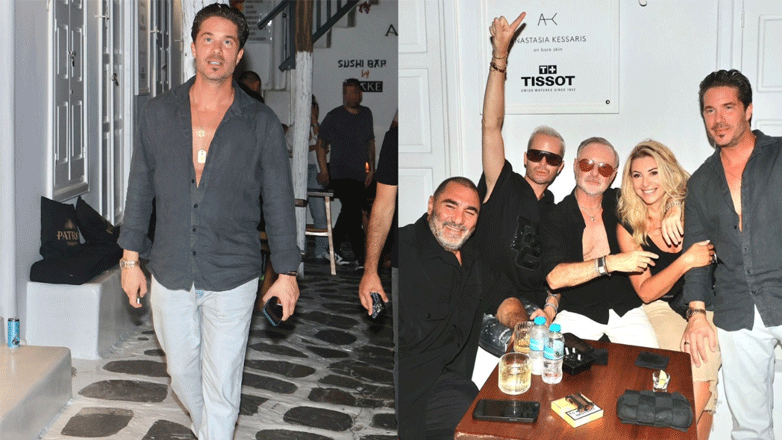 Νίκος Οικονομόπουλος: Βραδινή έξοδος μαζί με καλούς φίλους του στα σοκάκια της Μυκόνου – Φωτογραφίες