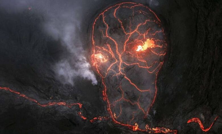 Ο ισπανός φωτογράφος Daniel Viñé Garcia κατέλαβε τη δεύτερη θέση απαθανατίζοντας τη στιγμή που η λάβα από το ηφαίστειο Φάγκρανταλσφγιαλ της Ισλανδίας σχημάτισε ένα σχέδιο που έμοιαζε με κρανίο