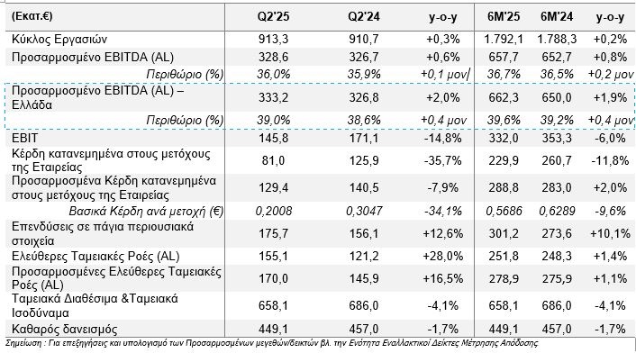 Σύμφωνα με τα οικονομικά αποτελέσματα που παρουσίασε ο όμιλος την Τετάρτη 6/8, τα ενοποιημένα έσοδα κατέγραψαν αύξηση (+0,3%) στα 913,3 εκατ. ευρώ.
