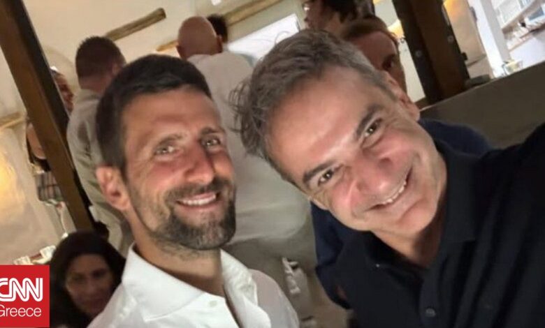 Ο  πρωθυπουργός Κυριάκος Μητσοτάκης συναντήθηκε στην Τήνο με τον κορυφαίο εν ενεργεία τενίστα Νόβακ Τζόκοβιτς.