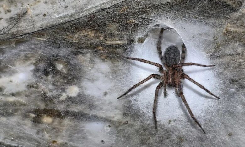 Μία από τις αράχνες του είδους Tegenaria domestica που ζει στο σπήλαιο
