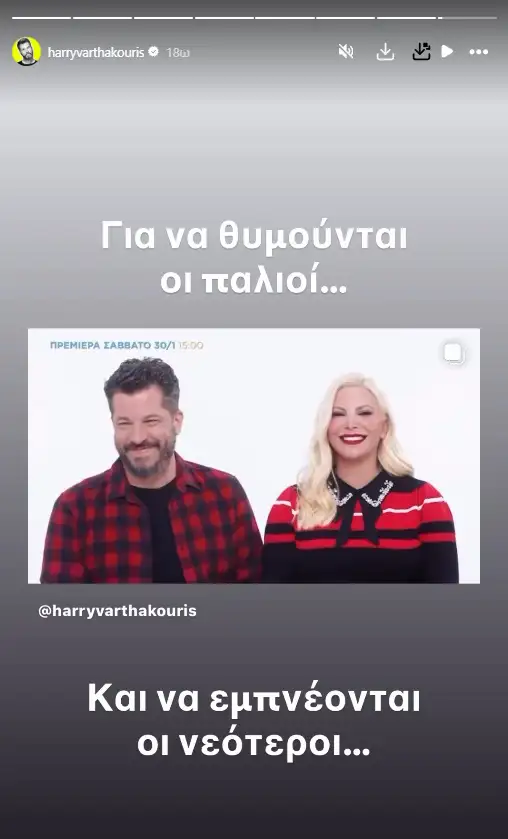 Λίγες ώρες αργότερα, ο Χάρης Βαρθακούρης ανέβασε μια σειρά από stories στον προσωπικό του λογαριασμό στο Instagram, τα οποία συζητήθηκαν έντονα. Σύμφωνα με ρεπορτάζ της εκπομπής «Πρωινό» του ΑΝΤ1, οι αναρτήσεις του Βαρθακούρη ήταν ξεκάθαρα σπόντες και «καρφιά» που στόχευαν ευθέως το trailer και την επερχόμενη εκπομπή του ζευγαριού Κάκκαβα-Γκουντάρα.