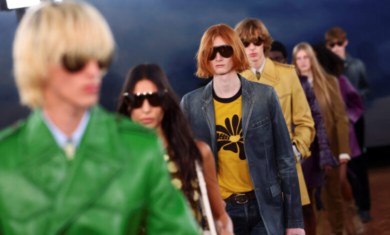 Κίτρινα και πράσινα tartan prints, κομψά καφέ κοστούμια εμπνευσμένα από τα ‘60s, crochet φορέματα, μεγάλα γυαλιά και δερμάτινα items σε σε γυαλιστερό πράσινο χρώμα «περπάτησαν» από την πασαρέλα σαν ένα fashion ταξίδι από τους Ramones μέχρι το indie sleaze των 2010s.