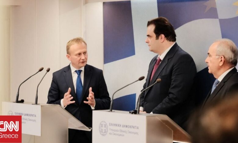 Ο ευρωπαϊκός προϋπολογισμός και οι θέσεις της Ελλάδας βρέθηκαν στο επίκεντρο της σημερινής συνάντησης του Υπουργού Εθνικής Οικονομίας και Οικονομικών Κυριάκου Πιερρακάκη με τον Επίτροπο της Ευρωπαϊκής Ένωσης Πιοτρ Σεράφιν, αρμόδιο για θέματα προϋπολογισμού, καταπολέμησης της απάτης και δημόσιας διοίκησης.