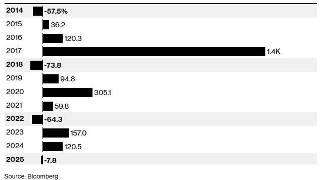 Οι ετήσιες αποδόσεις του Bitcoin: