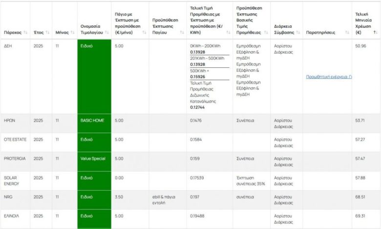 Πράσινα τιμολόγια: Ακριβότερο το ρεύμα του Νοεμβρίου – Δείτε τις τιμές των παρόχων