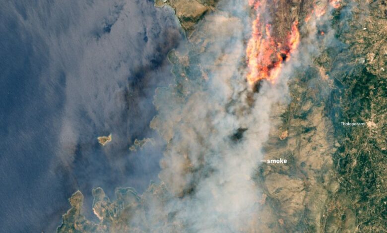 Δορυφορική αποτύπωση της φωτιάς στη Χίο