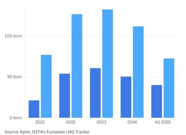 Οι εισαγωγές ΥΦΑ της ΕΕ από τις ΗΠΑ μειώθηκαν πέρυσι, πριν ανακάμψουν ξανά κατά το πρώτο εξάμηνο του 2025 και θέσουν την Ένωση σε τροχιά να ξεπεράσει το προηγούμενο ετήσιο ρεκόρ της.