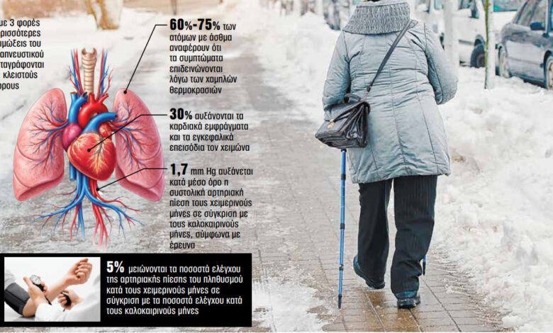 Ατομα με άσθμα, χρόνια πνευμονοπάθεια ή άλλα αναπνευστικά νοσήματα διατρέχουν αυξημένο κίνδυνο όταν πέφτουν οι θερμοκρασίες, επειδή ο ψυχρός και ξηρός αέρας ερεθίζει τους αεραγωγούς, προσθέτει ο Dr Khraishah. Αυτό οδηγεί σε αυξημένη φλεγμονή και σύσπαση των μυών γύρω από τους αεραγωγούς, προκαλώντας συριγμό, βήχα, δύσπνοια ή αίσθημα καύσου στο στήθος, ιδιαίτερα κατά τη σωματική άσκηση.