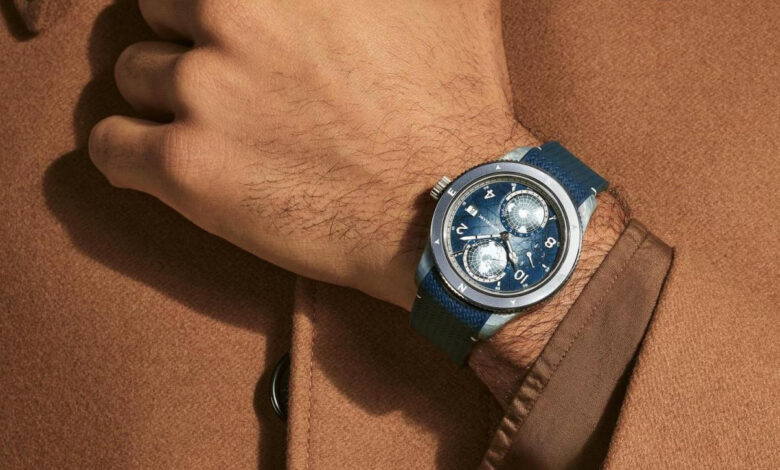 Αφήσαμε για το τέλος το νέο, εύκολα αντικαθιστώμενο λουράκι από καουτσούκ – είναι το πρώτο ρολόι της σειράς 1858 που εγκαταλείπει το λουράκι από δέρμα μοσχαριού. Το νέο μπλε-πράσινο λουράκι, που συνεχίζει θεματικά και χρωματικά την παγετώδη αισθητική της κάσας και του καντράν, διαθέτει ένα μοτίβο από σχοινί ορειβάτη, σε αρμονία και αυτό με το πολικό θέμα του ρολογιού. Ο σχεδιασμός του λουριού περιλαμβάνει επίσης ένα μοτίβο με ορεινά προφίλ στο εσωτερικό, για καλύτερη αναπνοή και άνεση στον καρπό.