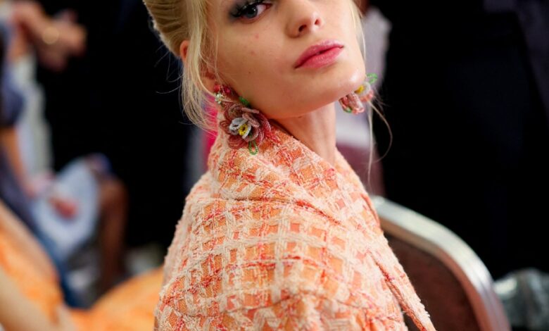 Τα beauty looks έχουν επίσης μια έντονα ρετρό αίσθηση με συγκλονιστικά buffant hair looks, doll eyes με ψεύτικες, σαν φτερά, βλεφαρίδες και έντονες, μπλε, πράσινες και ροζ αποχρώσεις στα βλέφαρα.