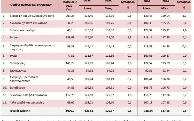 Ενώ, μέσος ΔΤΚ του δωδεκαμήνου Ιουλίου 2024 – Ιουνίου 2025, σε σύγκριση με τον αντίστοιχο Δείκτη του 2023 – 2024, παρουσίασε αύξηση 2,6%.