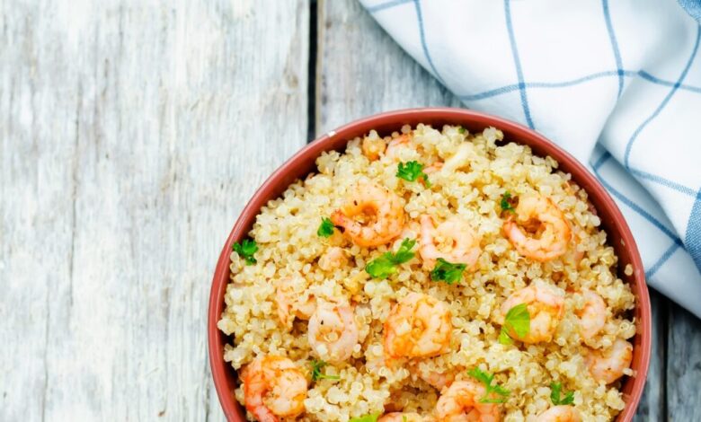 Ένα υγιεινό μεν – χορταστικό δε – πιάτο που μυρίζει καλοκαίρι. Κινόα και γαρίδες παντρεύονται στον πιο καλοκαιρινό συνδυασμό.
