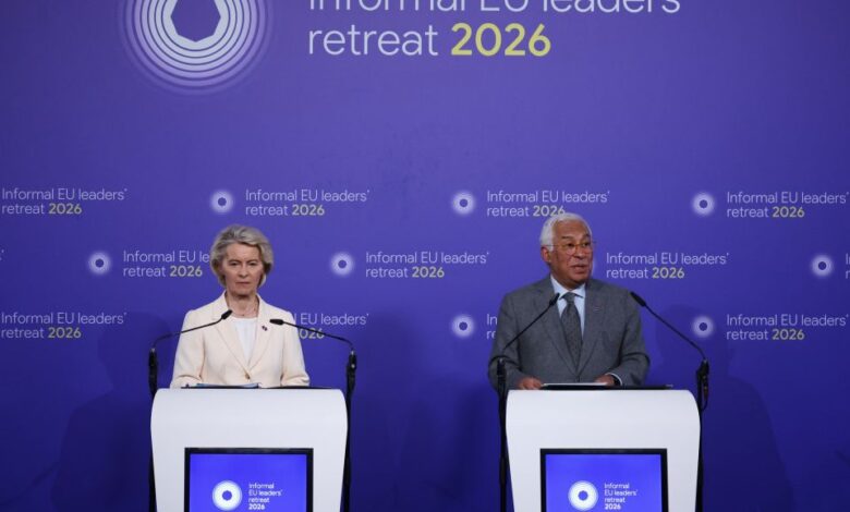Ο Πρόεδρος του Ευρωπαϊκού Συμβουλίου Αντόνιο Κόστα, και η Πρόεδρος της Ευρωπαϊκής Επιτροπής Ούρσουλα φον ντερ Λάιεν στη συνέντευξη Τύπου μετά την Σύνοδο Κορυφής της ΕΕ την Πέμπτη 12 Φεβρουαρίου 2026.