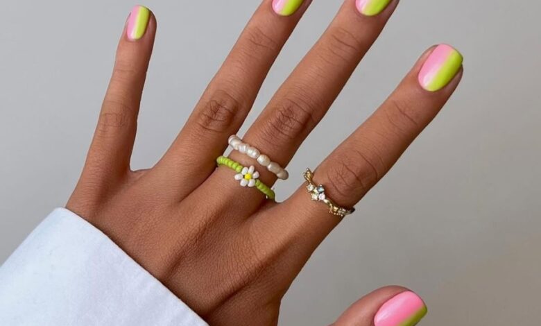 Φλούο και ombre μεν αλλά κάθετα που χαρίζει στο μανικιούρ ένα εκκεντρικό εφέ.