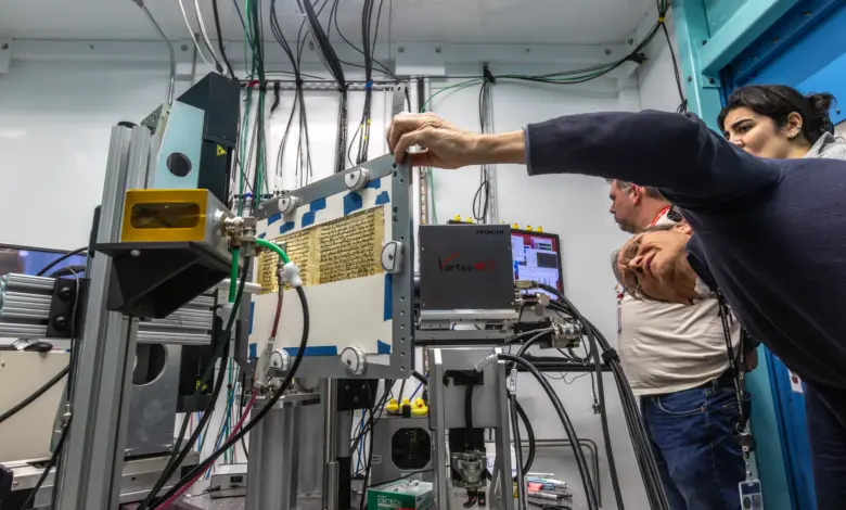 Η ομάδα, υπό τον Victor Gysembergh του Γαλλικού Εθνικού Κέντρου Επιστημονικής Έρευνας (CNRS), χρησιμοποίησε έναν τύπο επιταχυντή σωματιδίων που παράγει έντονες δέσμες ακτίνων Χ. Οι δέσμες αυτές διαπέρασαν τα στρώματα μελάνης του χειρογράφου ηλικίας 1.000 ετών, αποκαλύπτοντας το αρχικό ελληνικό κείμενο.