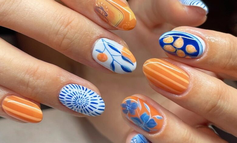 Η πιο φωτεινή πορτοκαλί απόχρωση με το floral να συναντά το french mani.