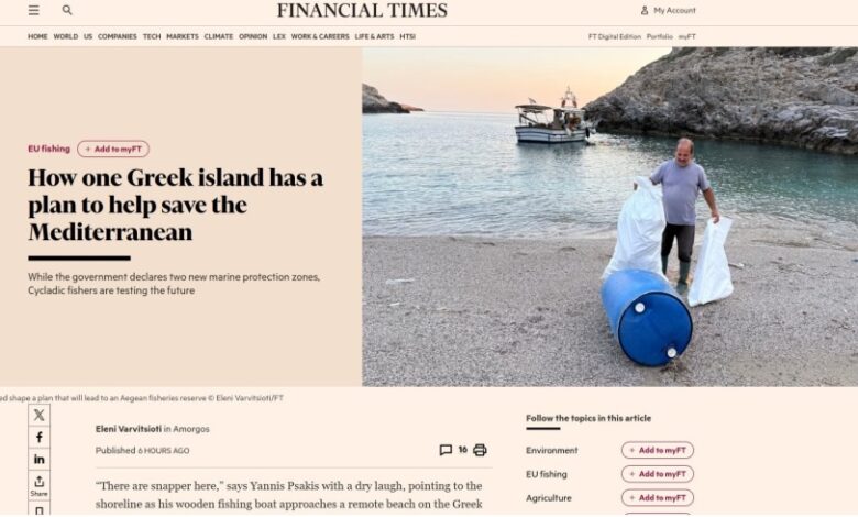 Αφιέρωμα στην προσπάθεια που κάνουν οι ψαράδες της Αμοργού για να προστατεύσουν το θαλάσσιο περιβάλλον στην περιοχή τους έκαναν οι Financial Times με αφορμή την ανακοίνωση των θαλάσσιων πάρκων από την κυβέρνηση πριν από μερικές εβδομάδες.