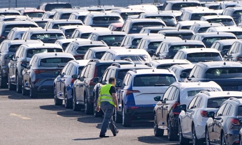Αυτοκίνητα γερμανικής παραγωγής σε κέντρο logistics στο Duisburg της Γερμανίας.