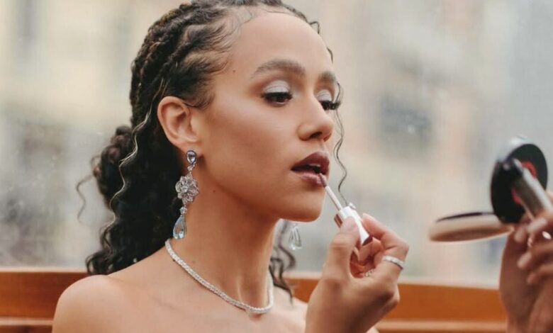 Το σοκολατί glossy κραγιόν έδωσε την τέλεια ισορροπία ανάμεσα στη λάμψη των ματιών και τη θηλυκότητα του υπόλοιπου look. Η επιλογή του gloss αντί για ματ υφή χάρισε μια πιο δροσερή, νεανική αίσθηση που ταιριάζει απόλυτα με την εποχή.