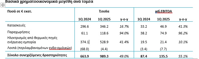 Όμιλος ΓΕΚ ΤΕΡΝΑ: Αύξηση 49% στα έσοδα και 55% στη λειτουργική κερδοφορία το πρώτο τρίμηνο του 2025