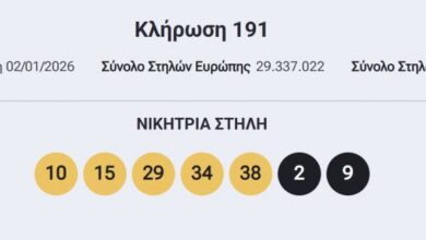 Πραγματοποιήθηκε η σημερινή (2/1) κλήρωση 191 του Eurojackpot που μοιράζει 71 εκατομμύρια ευρώ Οι τυχεροί αριθμοί, που ανέδειξε η κληρωτίδα της αποψινής κλήρωσης,…