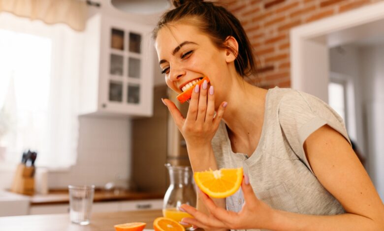 Πρώτα από όλα, τα φρούτα και τα λαχανικά που είναι πλούσια σε Βιταμίνη C, δεν θα πρέπει να λείπουν από την διατροφική καθημερινότητα. Οι κόκκινες πιπεριές, τα κεράσια, τα ακτινίδια, τα πορτοκάλια, τα μούρα είναι καλές πηγές βιταμίνης C, η οποία είναι αναγκαία για την παραγωγή κολλαγόνου στον οργανισμό.