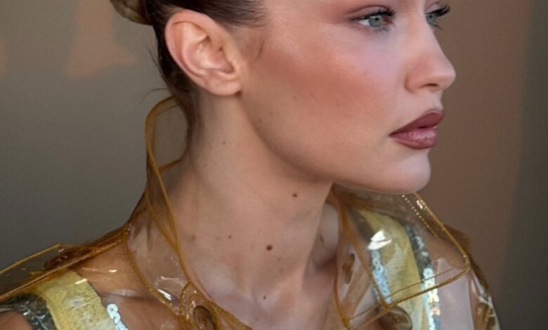 O Δημήτρης Γιαννέτος έχει μαζέψει τα μαλλιά της Gigi Hadid σε ένα wet bun με πολύ απαλά ανασηκωμένη φράντζα και sleek πλαϊνά. Είναι το τέλειο hairstyle τόσο για το γραφείο όσο και τις καλοκαιρινές, βραδινές εξόδους.