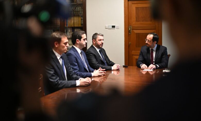 Ο πόλεμος στη Μέση Ανατολή και οι διπλωματικές προσπάθειες που θα πρέπει να γίνουν προκειμένου να αποκλιμακωθεί η κατάσταση και να επιτευχθεί ειρήνη ήταν μεταξύ άλλων σα θέματα που συζήτησαν ο πρόεδρος της Κυπριακής Δημοκρατίας Νίκος Χριστοδουλίδης και ο πρόεδρος του ΠΑΣΟΚ ΚΙΝΑΛ Νίκος Ανδρουλάκης, που επισκέπτεται την Κύπρο.