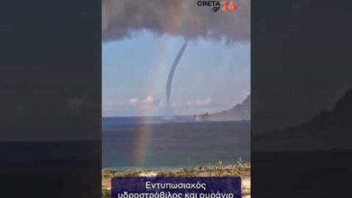 Μια σπάνια εικόνα καταγράφηκε το πρωί της Τρίτης στην Κρήτη καθώς «συναντήθηκαν» ένας υδροστρόβιλος και ένα ουράνιο τόξο. Τις σκηνές…