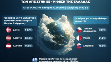 Από Ανανεώσιμες Πηγές Ενέργειας προήλθε το 54% της καθαρής ηλεκτρικής ενέργειας που παρήχθη στις χώρες της Ευρωπαϊκής Ένωσης το δεύτερο…